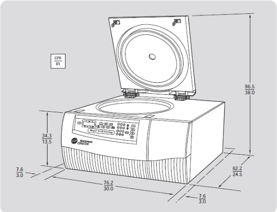3.在離心機側(cè)邊及后方留出 7.6-cm (3- 英寸)的間隙以確保通風(fēng)良好