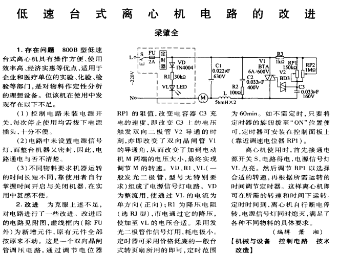 低速臺式離心機電路的改進