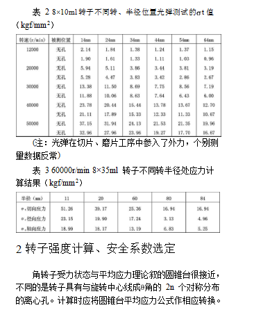 光彈實(shí)驗(yàn)測(cè)量結(jié)果與浙大力學(xué)系用軸對(duì)稱有限元計(jì)算結(jié)果基本一致。通過轉(zhuǎn)子實(shí)體的電測(cè)實(shí)驗(yàn),我們進(jìn)一步論證了轉(zhuǎn)子與其它旋轉(zhuǎn)運(yùn)動(dòng)的構(gòu)件一樣,它的應(yīng)變