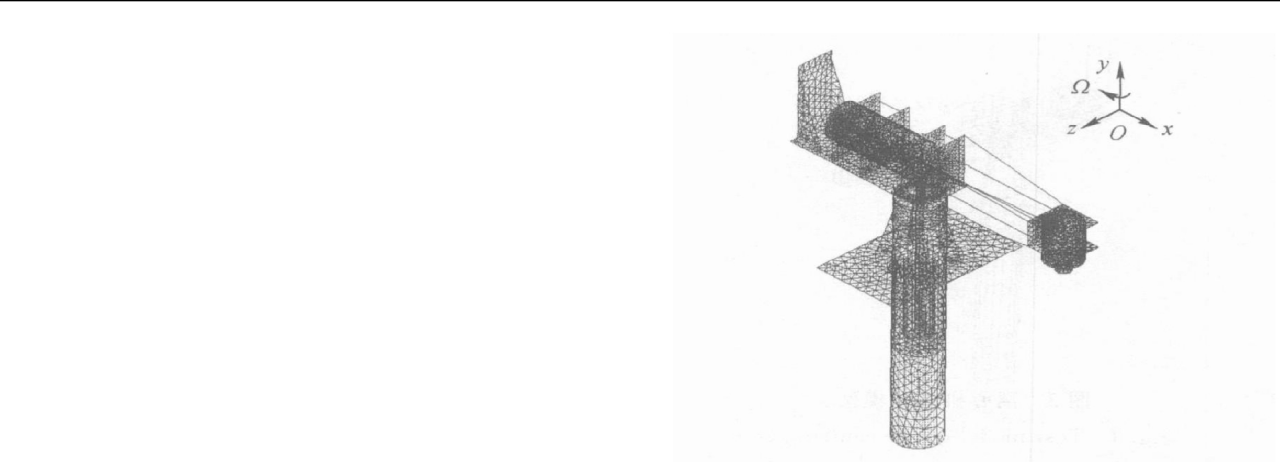 離心機有限元網格劃分如圖 2所示. 離心機繞主軸作旋轉運動 (主軸為 y 向 ) ,除了受到空氣的阻力、振動臺傳遞到機臂上的力以外 ,還受到自身離心力場的作用 ,根據變分原理可以得到離心機臂有限元振動方程